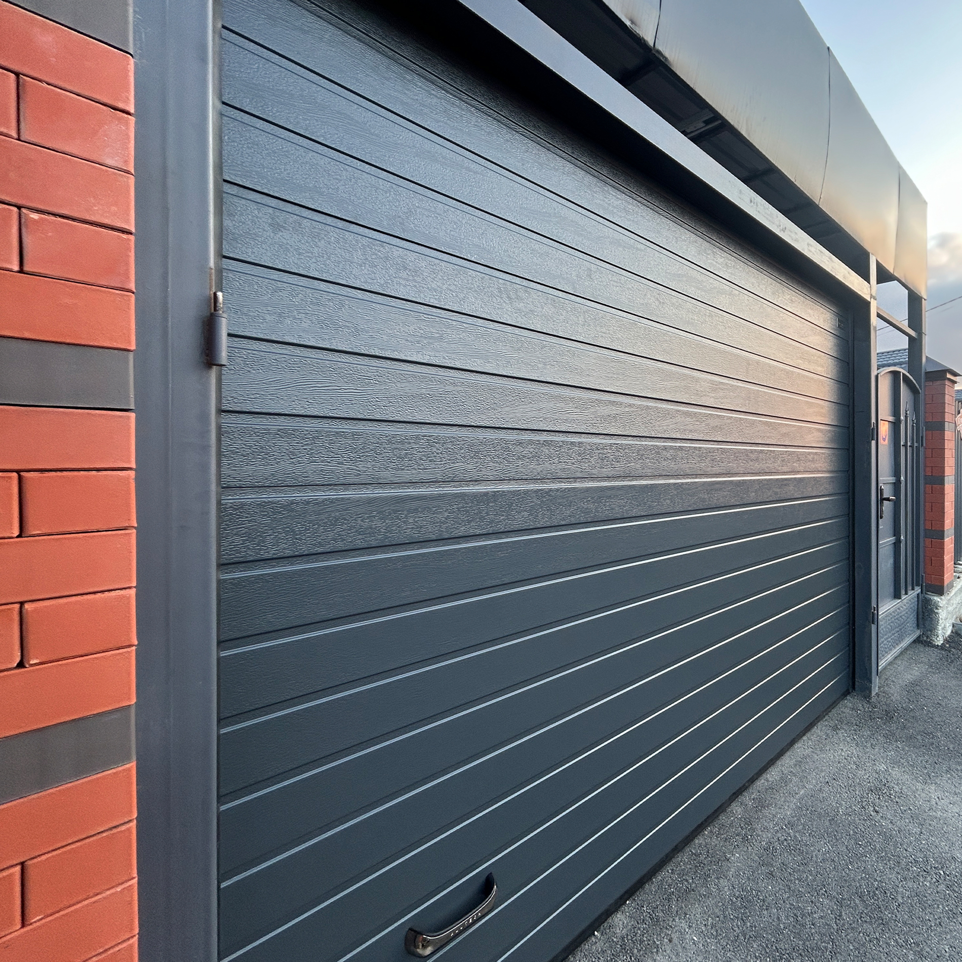 Заказали секционные ворота в компании "Главные Ворота". Ворота установили очень быстро. Работают они практически бесшумно, нам очень нравится и цвет совпал!
